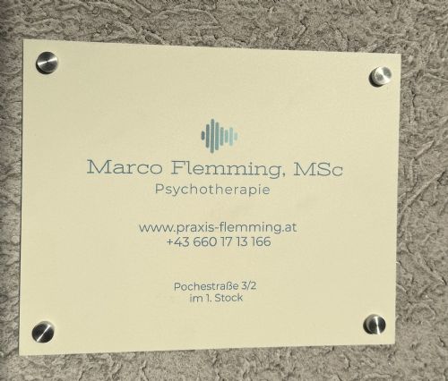 Praxisschild Mag. Stefan Hofbauer, Psychotherapeut, Klinischer & Gesundheitspsychologe, Göllnergasse 8, 1030 Wien.