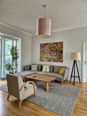 Gemütlicher, heller Gesprächsraum mit Wohnzimmeratmosphäre in der Lichtblickpraxis - mit Blick auf den Plabutsch.
